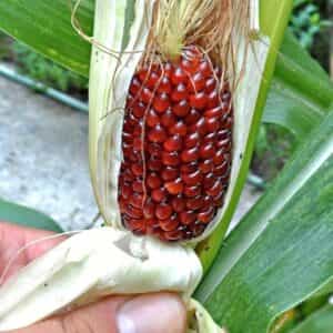 Σπάνια παραδοσιακή ποικιλία από Καλαμπόκι Ποπ Κορν μικρού μεγέθους, το οποίο είναι γνωστό με την ονομασία ''Strawberry Popcorn''. Η συγκεκριμένη ποικιλία δεν είναι γλυκιά στη γεύση της και δεν φέρει εμπορική αξία. Χρησιμοποιείται για καλλωπιστικούς σκοπούς. Τα φυτά είναι πρώιμης ανάπτυξης και ξεχωρίζουν για τους πανέμορφους κοκκινωπούς σπόρους τους. Φτάνουν γύρω στα 2 μέτρα σε ύψος και αγαπούν τα ανοιχτά μέρη για καλλιέργεια με πλήρη ηλιοφάνεια. Δηλαδή, δεν συνίσταται η ανάπτυξή τους σε σκιερά ή ημισκιερά μέρη και σε μέρη κάτω από δέντρα. Είναι σχετικά εύκολη η καλλιέργεια της συγκεκριμένης ποικιλίας, αφού το μόνο που επιζητά είναι τακτικό πότισμα και πλήρη ηλιοφάνεια, ενώ επάνω σε κάθε φυτό σχηματίζει συνήθως 2-4 λοβούς. Η σπορά συνίσταται να γίνεται κυρίως αρχές της άνοιξης (αρχές Μαρτίου έως Μάιο) ή απευθείας στη γη ή σε κυπελλάκια και ύστερα μεταφύτευση στη γη. Η μεταφύτευση θα πρέπει να γίνεται άμεσα και αραιά (περίπου 60-80 εκατοστά μεταξύ των ριζών), μόλις τα φυτά αναπτυχθούν στα 5-6 εκατοστά σε ύψος. Τα παρακλάδια που μπορεί να βγάζει από τον κορμό συνίσταται να κόβονται για να εστιάσει την ενέργεια του το φυτό στον κεντρικό κορμό και να δέσει καρπό. Το Καλαμπόκι ''Strawberry Popcorn'' αποτελεί μια εντυπωσιακή ποικιλία και σίγουρα απευθύνεται σε συλλέκτες, αλλά και σε όσους αναζητούν και καλλιεργούν σπάνιες παραδοσιακές ποικιλίες καλαμποκιών.