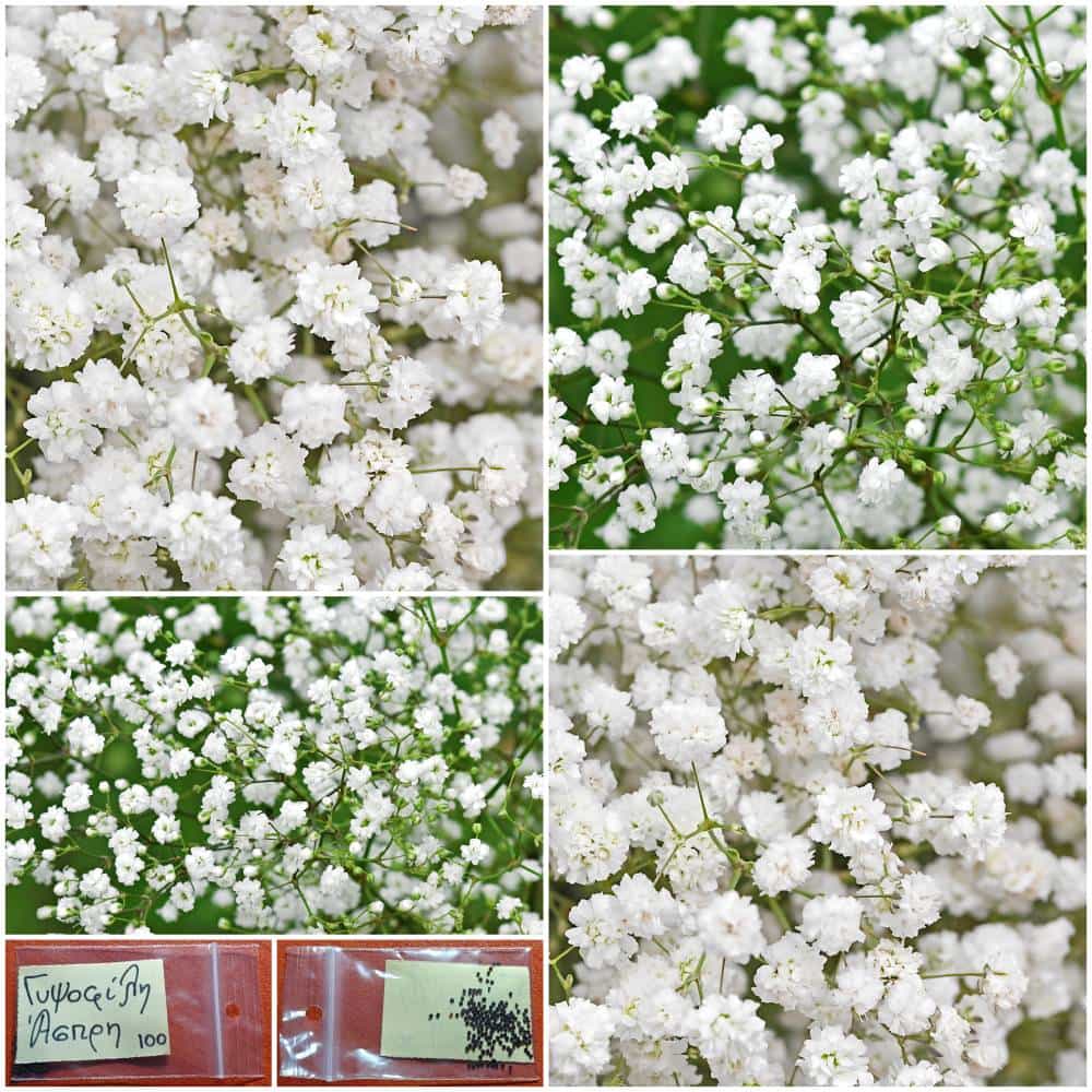 Η Γυψοφίλη Άσπρη, γνωστή και ως ”Baby’s Breath”, είναι ένα ετήσιο καλλωπιστικό φυτό που ξεχωρίζει για τα πολυάριθμα, μικρά λευκά άνθη της, τα οποία σχηματίζουν μια εντυπωσιακά ανάλαφρη, παλέτα ανθοφορίας πάνω από λεπτούς, διακλαδισμένους βλαστούς. Με ύψος που κυμαίνεται από 30 έως 50 εκατοστά, η Γυψοφίλη αποτελεί ιδανική επιλογή για παρτέρια, κήπους και ανθοσυνθέσεις, καθώς τα άνθη της διατηρούνται φρέσκα για μεγάλο χρονικό διάστημα και είναι επίσης κατάλληλα για αποξήρανση. Ανθίζει από τα τέλη της άνοιξης έως το φθινόπωρο, προσφέροντας συνεχή, ελαφριά ανθοφορία με ιδιαίτερη χάρη. Προτιμά ηλιόλουστες θέσεις και εδάφη μέτριας γονιμότητας, ωστόσο καλά στραγγιζόμενα. Τα φυτά μπορούν να καλλιεργηθούν σε κήπους, παρτέρια, βραχόκηπους, γλάστρες, μπαλκόνια, αλλά και ζαρντινιέρες. Αγαπούν τα φωτεινά μέρη και τα θερμά κλίματα έως 28 βαθμών Κελσίου. Συνίσταται αρχικά η σπορά σε κυπελάκια και ύστερα μεταφύτευση. Τα σποράκια θα πρέπει να είναι σε θερμοκρασίες σταθερά άνω των 21+ βαθμών Κελσίου. Η απόσταση μεταξύ των ριζών θα πρέπει να είναι γύρω στα 25-40 εκατοστά για επαρκή κυκλοφορία αέρα. Η Άσπρη Γυψοφίλη είναι η απόλυτη επιλογή για όσους επιθυμούν να προσθέσουν μια νότα ρομαντισμού, ελαφρότητας και διαχρονικής κομψότητας στον κήπο ή στις ανθοσυνθέσεις τους, με ελάχιστη φροντίδα, αλλά μέγιστο αισθητικό αποτέλεσμα.