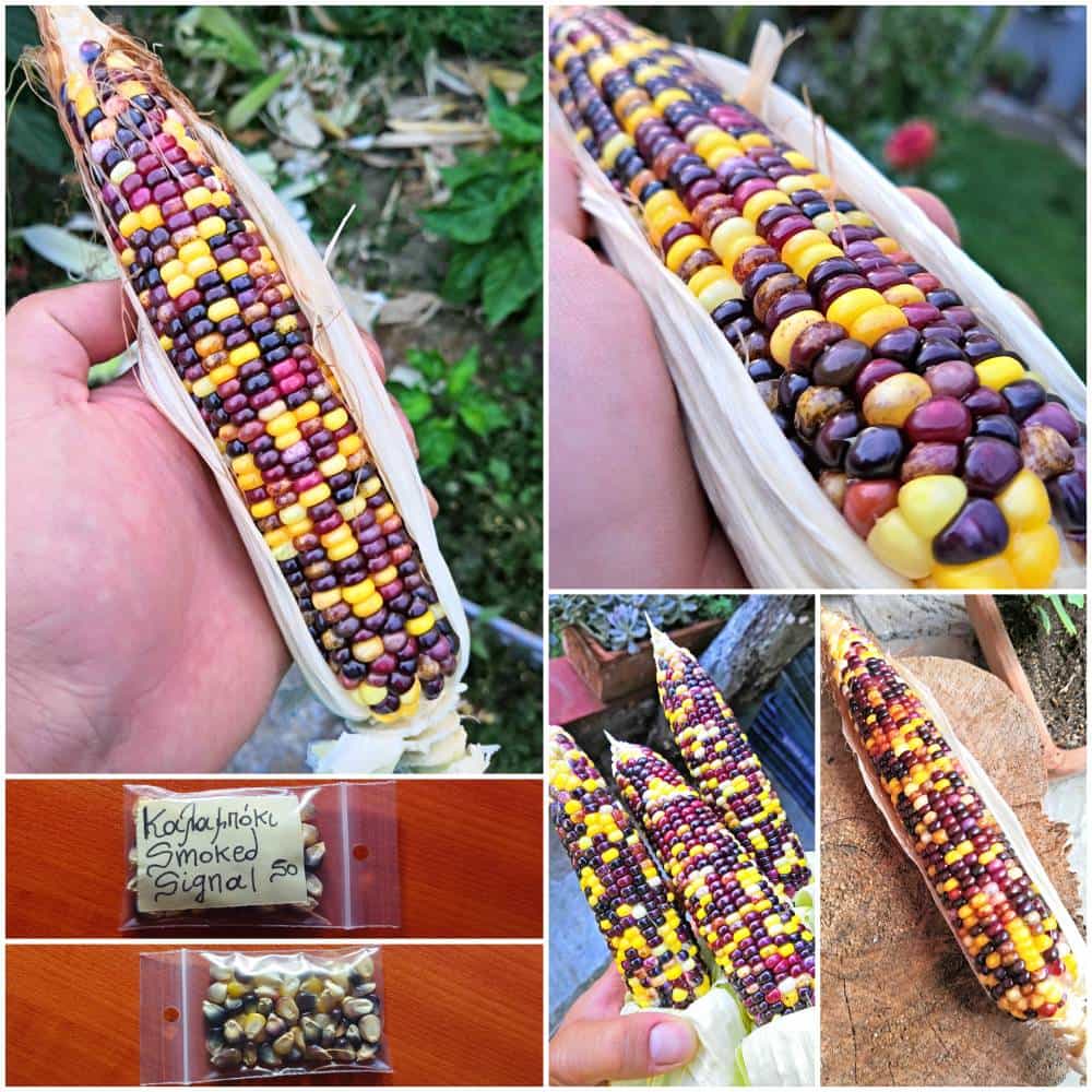 Σπάνια παραδοσιακή ποικιλία από καλλωπιστικό πολύχρωμο Καλαμπόκι, το οποίο είναι γνωστό με την ονομασία ”Smoked Signal”. Η συγκεκριμένη ποικιλία καλλιεργείται κυρίως για διακοσμητικούς σκοπούς, αφού δεν είναι γλυκιά σε γεύση και δεν φέρει εμπορική αξία. Θα μπορούσε να χρησιμοποιηθεί ως τροφή για ζώα ή να αλεθεί. Τα φυτά μπορούν να ξεπεράσουν τα 2 μέτρα σε ύψος και αγαπούν τα ανοιχτά μέρη για καλλιέργεια με πλήρη ηλιοφάνεια. Δηλαδή, δεν συνίσταται η ανάπτυξή τους σε σκιερά ή ημισκιερά μέρη και σε μέρη κάτω από δέντρα. Είναι εύκολη η καλλιέργεια της συγκεκριμένης ποικιλίας, αφού το μόνο που επιζητά είναι τακτικό πότισμα και πλήρη ηλιοφάνεια, ενώ επάνω σε κάθε φυτό σχηματίζει συνήθως 2-3 λοβούς. Η σπορά συνίσταται να γίνεται κυρίως αρχές της άνοιξης (αρχές Μαρτίου έως Μάιο), σε κυπελλάκια και ύστερα μεταφύτευση στη γη. Η μεταφύτευση θα πρέπει να γίνεται άμεσα, μόλις τα φυτά αναπτυχθούν στα 7-8 εκατοστά σε ύψος. Το Καλαμπόκι ”Smoked Signal” φέρει πανέμορφα χρώματα και αποτελεί μια ιδιαίτερη πρόταση διακόσμησης για το εσωτερικό του σπιτιού, της κουζίνας, ενώ παράλληλα μπορεί να προσφέρει κάτι ξεχωριστό σε βιτρίνες καταστημάτων.