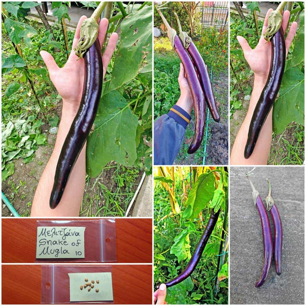 Σπάνια Παραδοσιακή ποικιλία από μακριά Μελιτζάνα Γίγας, η οποία είναι γνωστή με την ονομασία ”Snake of Mugla”. Η συγκεκριμένη ποικιλία διακρίνεται για τους επιμήκεις καρπούς της, οι οποίοι δεν περνούν απαρατήρητοι στον κήπο. Τα φυτά μπορούν να ξεπεράσουν τα 2 μέτρα σε ύψος, γι’ αυτό και χρειάζονται στιβαρά στηρίγματα. Οι καρποί φέρουν τρυφερή και γλυκιά σάρκα, ενώ δεν περιέχουν καθόλου πίκρα. Συνίσταται η συγκομιδή σε πρώιμο στάδιο ανάπτυξης των καρπών, όσο είναι τρυφεροί ακόμη. Προτείνουμε η καλλιέργεια να γίνεται σε φωτεινά μέρη, κάτω από δίχτυ σκίασης 40% για μεγιστοποίηση της απόδοσης των φυτών και την αποφυγή της πλήρους ηλιακής ακτινοβολίας κατά τους καλοκαιρινούς μήνες. Είναι καλό η σπορά να γίνεται αρχές της άνοιξης, αρχικά σε κυπελλάκια και ύστερα μεταφύτευση στη γη. Η απόσταση μεταξύ των ριζών συνίσταται να είναι γύρω στο 1 μέτρο, για να έχουν χώρο και να δώσουν πλούσια καρποφορία. Η ιδανική θερμοκρασία ανάπτυξης των φυτών είναι μεταξύ 22-30 βαθμών Κελσίου. Η Μελιτζάνα Γίγας ”Snake of Mugla” είναι μια από τις πιο εντυπωσιακές μελιτζάνες που έχουμε καλλιεργήσει.