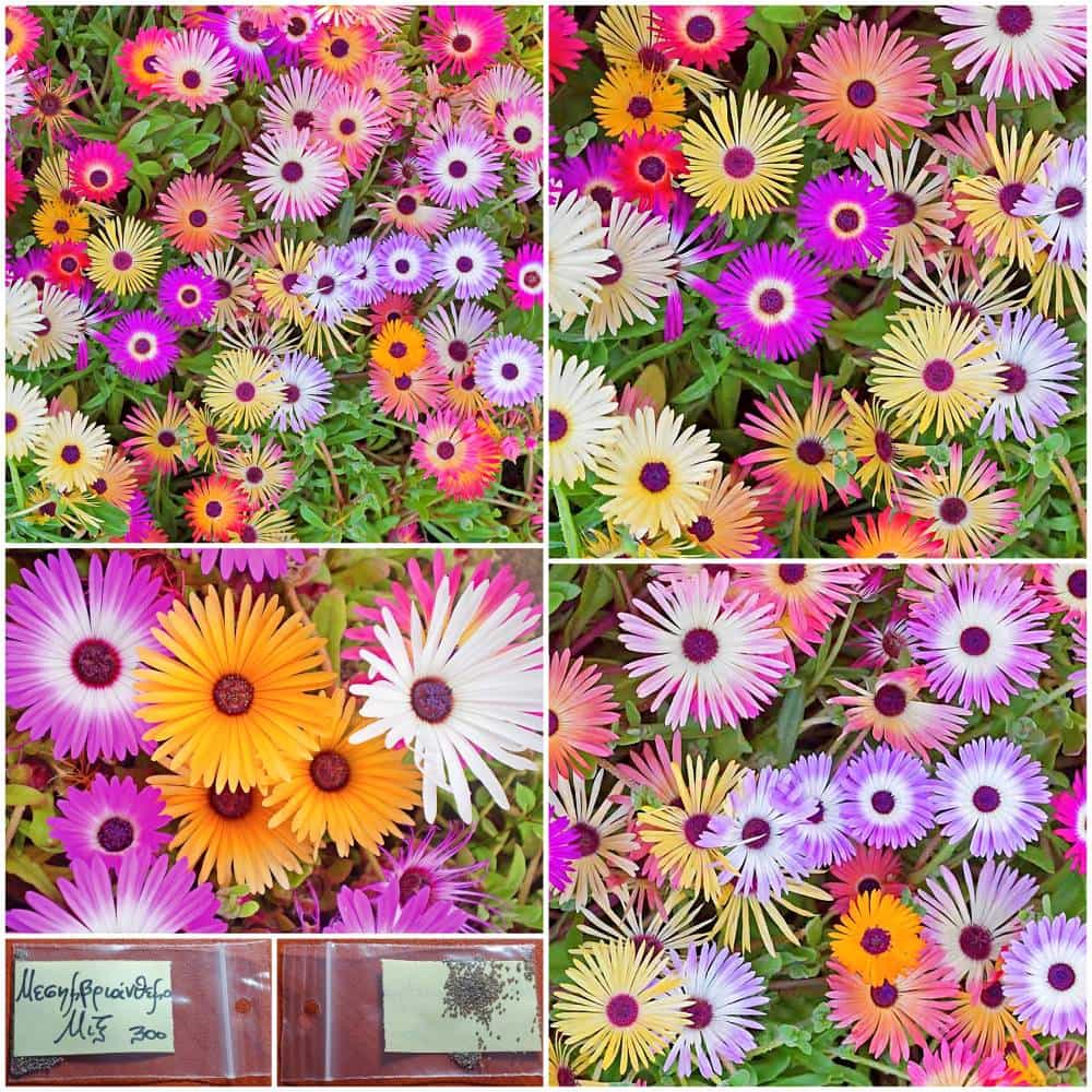Το Μεσημβριάνθεμο Μιξ (Mesembryanthemum criniflorum), γνωστό και ως Livingstone Daisy ή Ice Plant, είναι ένα ιδιαίτερα εντυπωσιακό, ετήσιο φυτό, αγαπητό για τα ζωηρά και λαμπερά του άνθη, τα οποία μοιάζουν με μικρούς ήλιους και ανοίγουν μόνο υπό το φως του ήλιου. Η συγκεκριμένη ποικιλία χαρακτηρίζεται από τα παχιά, σαρκώδη φύλλα της, με ασημοπράσινη απόχρωση, τα οποία της προσδίδουν εξαιρετική ανθεκτικότητα στην ξηρασία. Το ύψος των φυτών κυμαίνεται από 10 έως 20 εκατοστά, ενώ η ιδανική απόσταση φύτευσης μεταξύ των ριζών είναι 15 έως 20 εκατοστά, ώστε να αναπτυχθούν ομοιόμορφα. Προτιμά πλήρη ηλιοφάνεια και καλά στραγγιζόμενο έδαφος, ενώ ευδοκιμεί ιδανικά σε θερμοκρασίες μεταξύ 18–25 βαθμών Κελσίου. H ανθοφορία να ξεκινά περίπου 50–60 ημέρες μετά τη σπορά. Συνίσταται σπορά αρχικά σε κυπελάκια και ύστερα μεταφύτευση, για την καλύτερη διαχείριση των φυτών και σπόρων. Το φυτό ανθίζει άφθονα από τα τέλη της άνοιξης έως τις αρχές του φθινοπώρου, καλύπτοντας το έδαφος με ένα πολύχρωμο χαλί από ροζ, μωβ, λευκά, κόκκινα και κίτρινα άνθη. Το Μεσημβριάνθεμο αποτελεί ιδανική επιλογή για παρτέρια, βραχόκηπους και γλάστρες, ενώ δεν απαιτεί ιδιαίτερη φροντίδα, γεγονός που το καθιστά εξαιρετική επιλογή για ερασιτέχνες και λάτρεις των φυτών με χαμηλές απαιτήσεις συντήρησης.
