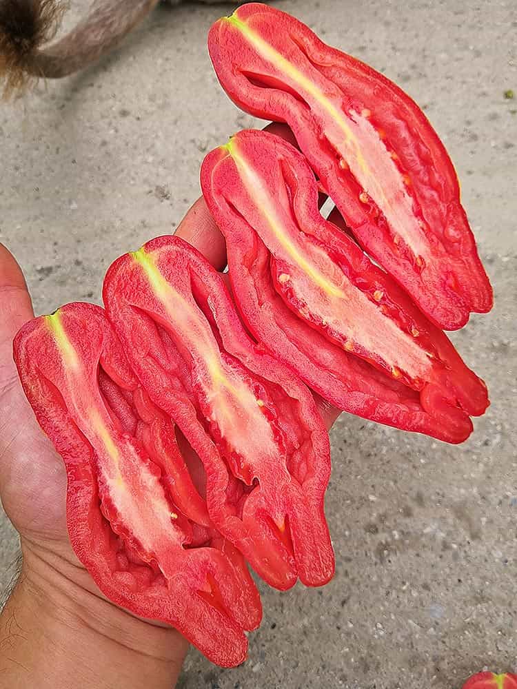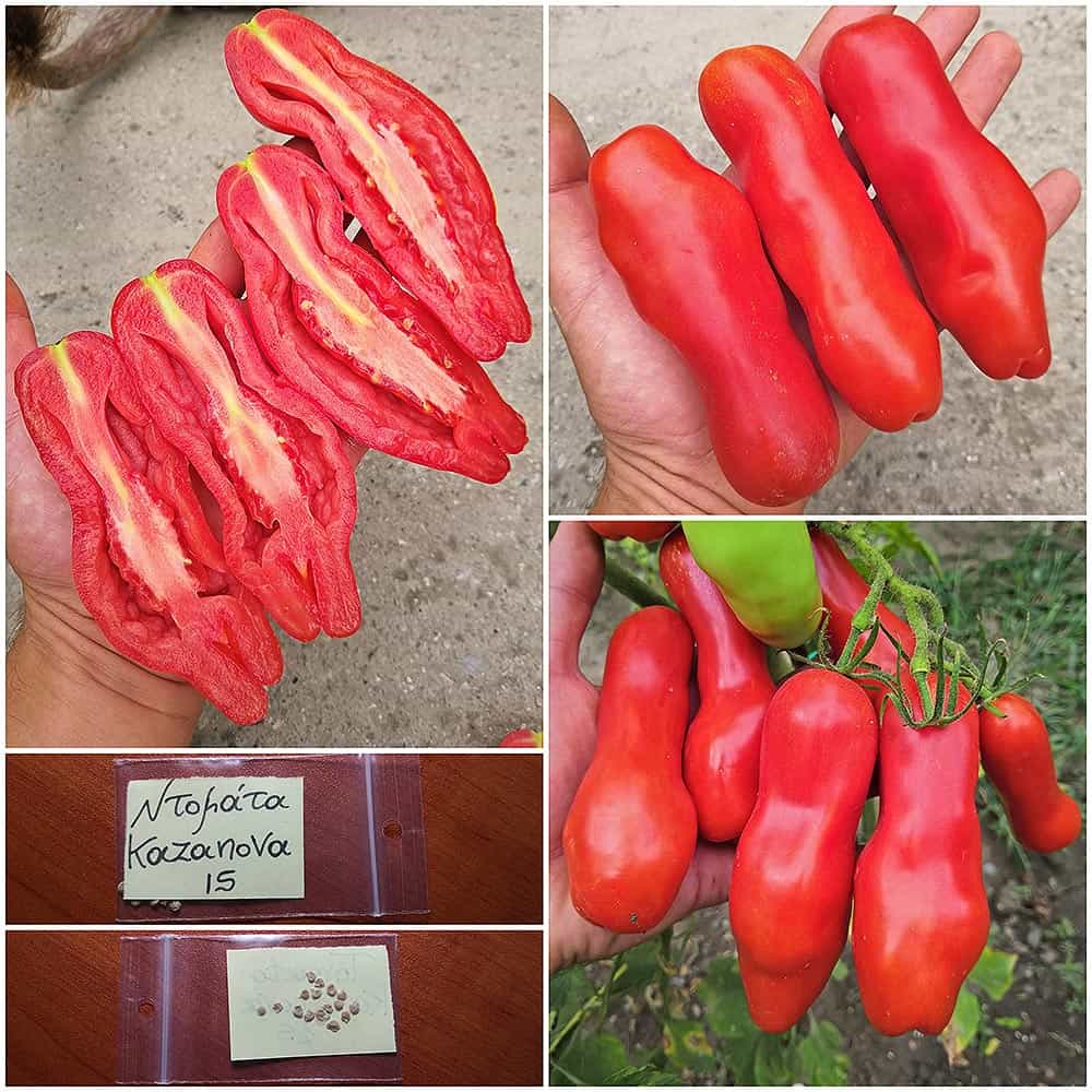 Παραδοσιακή και σπάνια ποικιλία στενόμακρης γλυκιάς ντομάτας με ονομασία ”Kazanova”. Το φυτό γίνεται ψηλό, φτάνει τα 2 μέτρα σε ύψος και χρειάζεται στηρίγματα. Οι καρποί είναι ακανόνιστου σχήματος και μπορούν να χρησιμοποιηθούν με διάφορους τρόπους στη μαγειρική, ως φρέσκοι ή ακόμη και σε σάλτσες. Τα φυτά είναι εύρωστα και παραγωγικά με αφθονία καρπών. Σίγουρα πρόκειται για μια πολύ ιδιαίτερη ποικιλία που ξεχωρίζει μέσα στον κήπο.