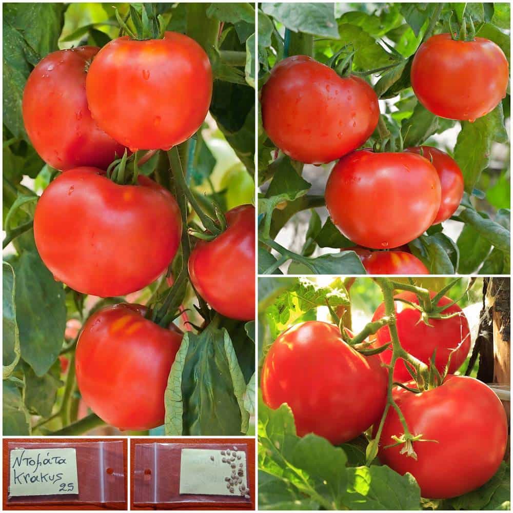 Παραδοσιακή ποικιλία Ντομάτας, η οποία είναι γνωστή με την ονομασία ”Krakus”. Η συγκεκριμένη ποικιλία είναι μεσο-όψιμη, αναρριχώμενη και χρειάζεται στηρίγματα. Τα φυτά φτάνουν τα 2 μέτρα σε ύψος, ενώ οι καρποί είναι μεσαίου μεγέθους, σφαιρικοί, ελαφρώς πεπλατυσμένοι και με βαθύ κόκκινο χρώμα τόσο στην σάρκα όσο και στον φλοιό τους. Εσωτερικά δεν αναπτύσσουν πράσινα νεύρα γύρω από το κοτσάνι και κυμαίνονται συνήθως μεταξύ 100-200 γραμμαρίων. Συνίστανται για φρέσκια – νωπή κατανάλωση και παρουσιάζει υψηλή διατηρησιμότητα. Τα φυτά σχηματίζουν καρπούς τόσο σε τσαμπιά όσο και μεμονωμένα καθώς αναπτύσσονται και φουντώνουν. Προτείνουμε να αφήσετε 1 έως 3 κεντρικούς κορμούς, με σκοπό την καλύτερη διαχείριση των φυτών. Η συγκεκριμένη ποικιλία μπορεί να καλλιεργηθεί και υπαίθρια και σε θερμοκήπια. Κατά τους καλοκαιρινούς μήνες σε υπαίθρια καλλιέργεια συνίσταται δίχτυ σκίασης 40%, έτσι ώστε τα φυτά να προστατευτούν από την υπερβολικά υψηλή ηλιακή ακτινοβολία και να εστιάσουν στην παραγωγή. Η σπορά γίνεται αρχές της άνοιξης, ιδανικά κατά τον μήνα Μάρτιο, αρχικά σε κυπελλάκια και ύστερα μεταφύτευση στη γη. Η ιδανική απόσταση μεταξύ των ριζών είναι τα 70 εκατοστά με 1 μέτρο. Οι ιδανικές θερμοκρασίες ανάπτυξης των φυτών είναι μεταξύ 22 – 30 βαθμών Κελσίου. Η Ντομάτα ”Krakus” αποτελεί μια εξαιρετική επιλογή μεσο-όψιμης παραδοσιακής ποικιλίας, με γευστικούς, γλυκούς, καρπούς, ενώ η παραγωγή κυμαίνεται μεταξύ 6-8 κιλών ανά φυτό.